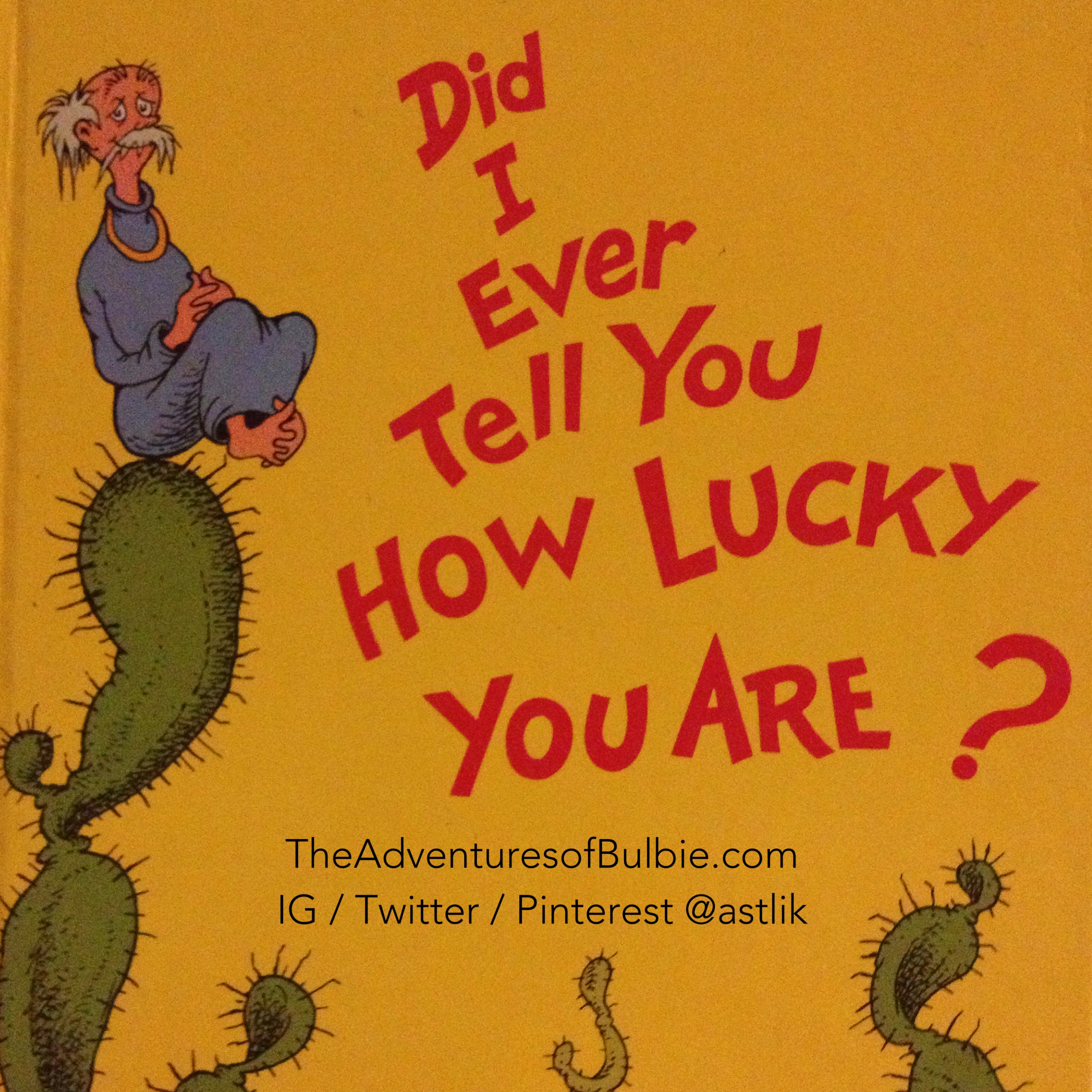 So Peas has been reading to Sage before bedtime – and yesterday he read a Dr. Seuss book called “Did I Ever Tell You How Lucky You Are?”